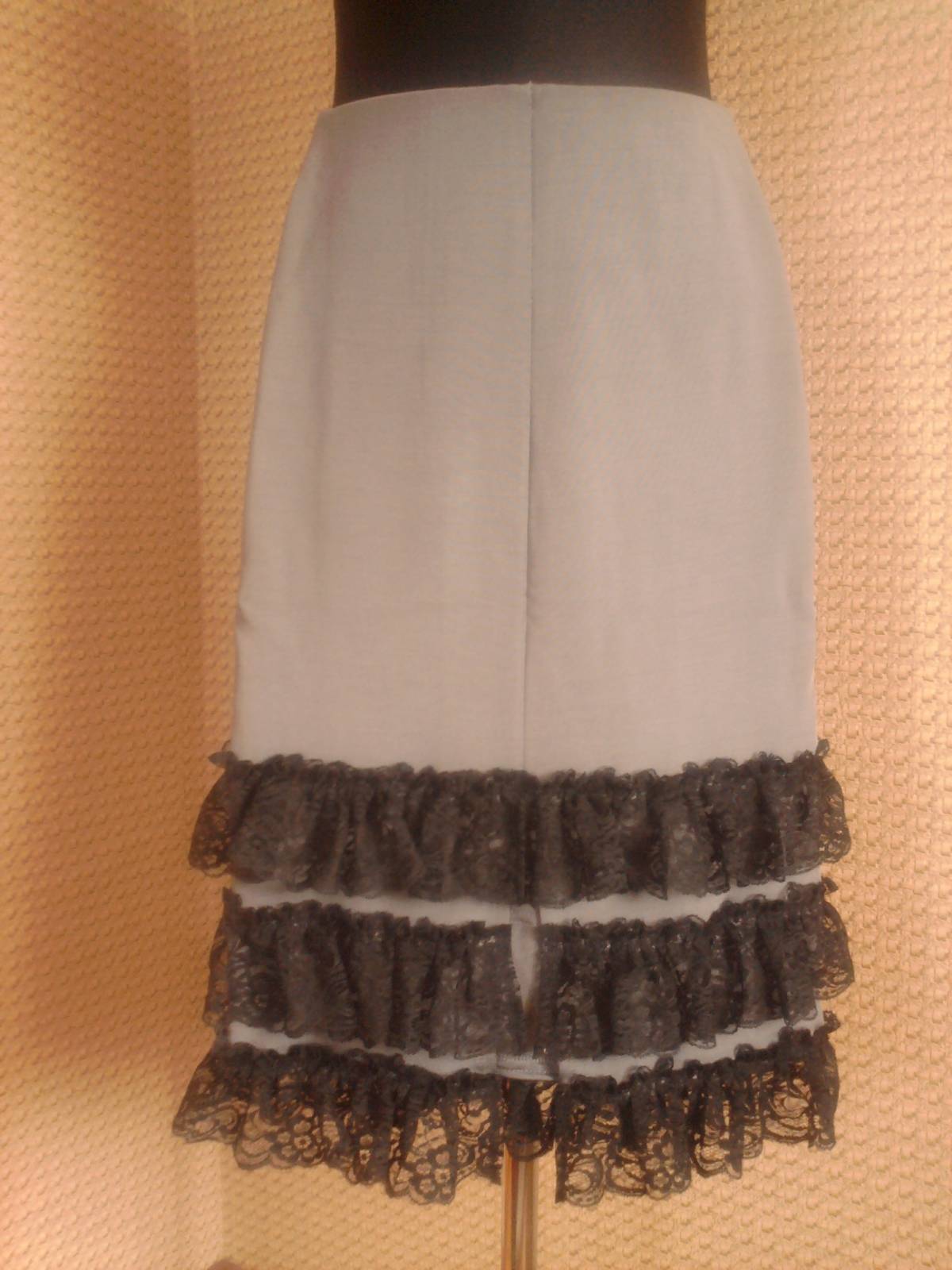 Юбка-карандаш с кружевом (черная). Вид со спины.
