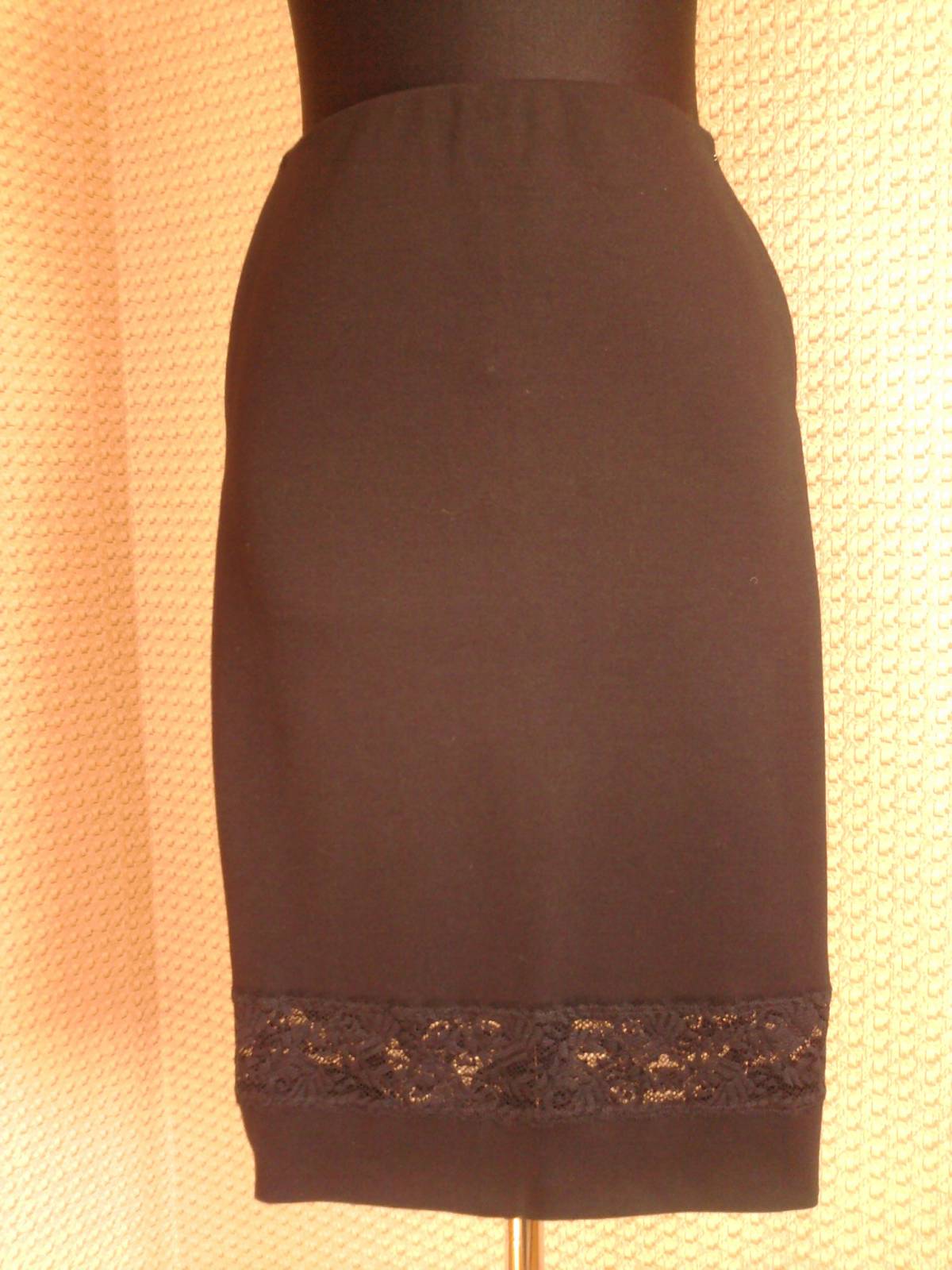 Юбка-карандаш с кружевом (черная). Ткань: трикотаж, кружево.