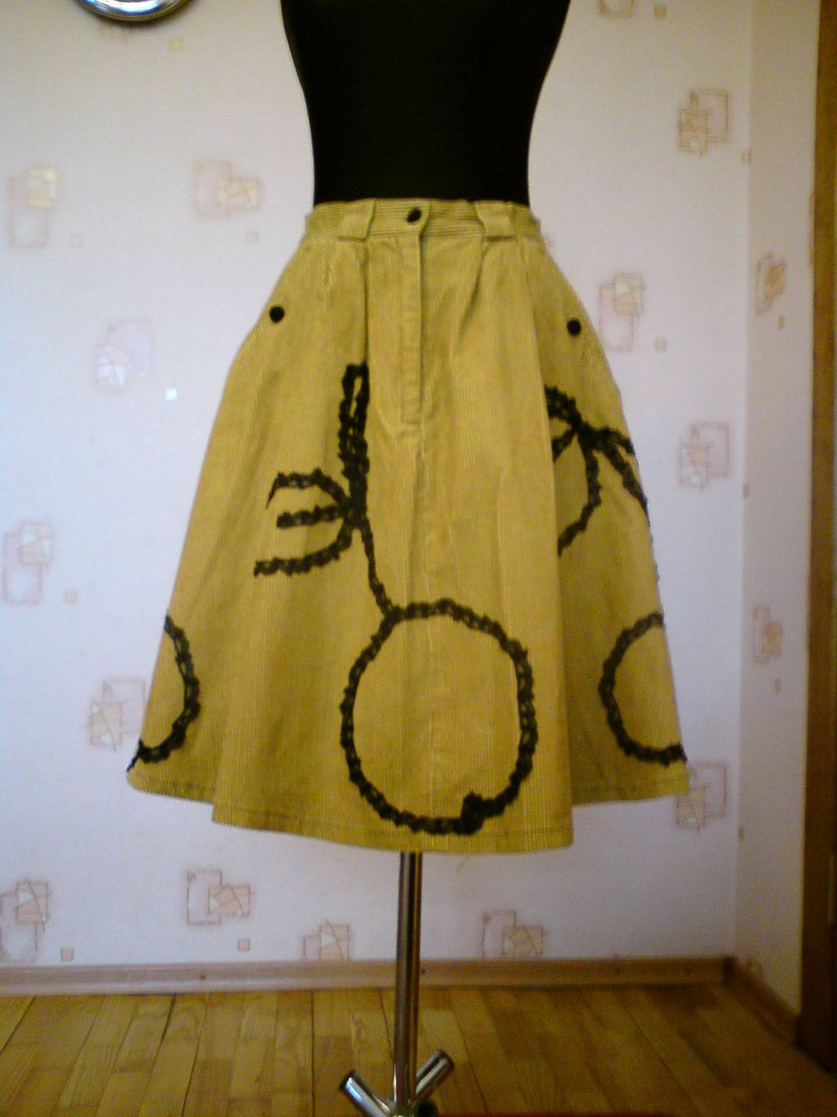 Была обычная юбка. Я ее обновила фигурной настрочкой тесьмы из кружева.