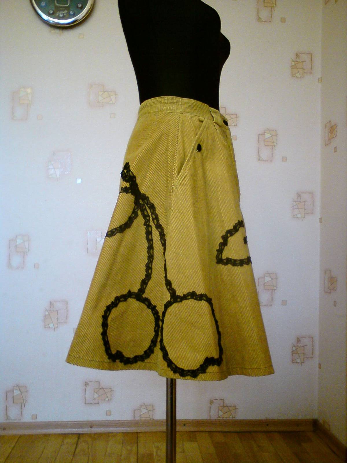 Юбка "Вишня". Ткань: вельвет, тесьма кружевная.