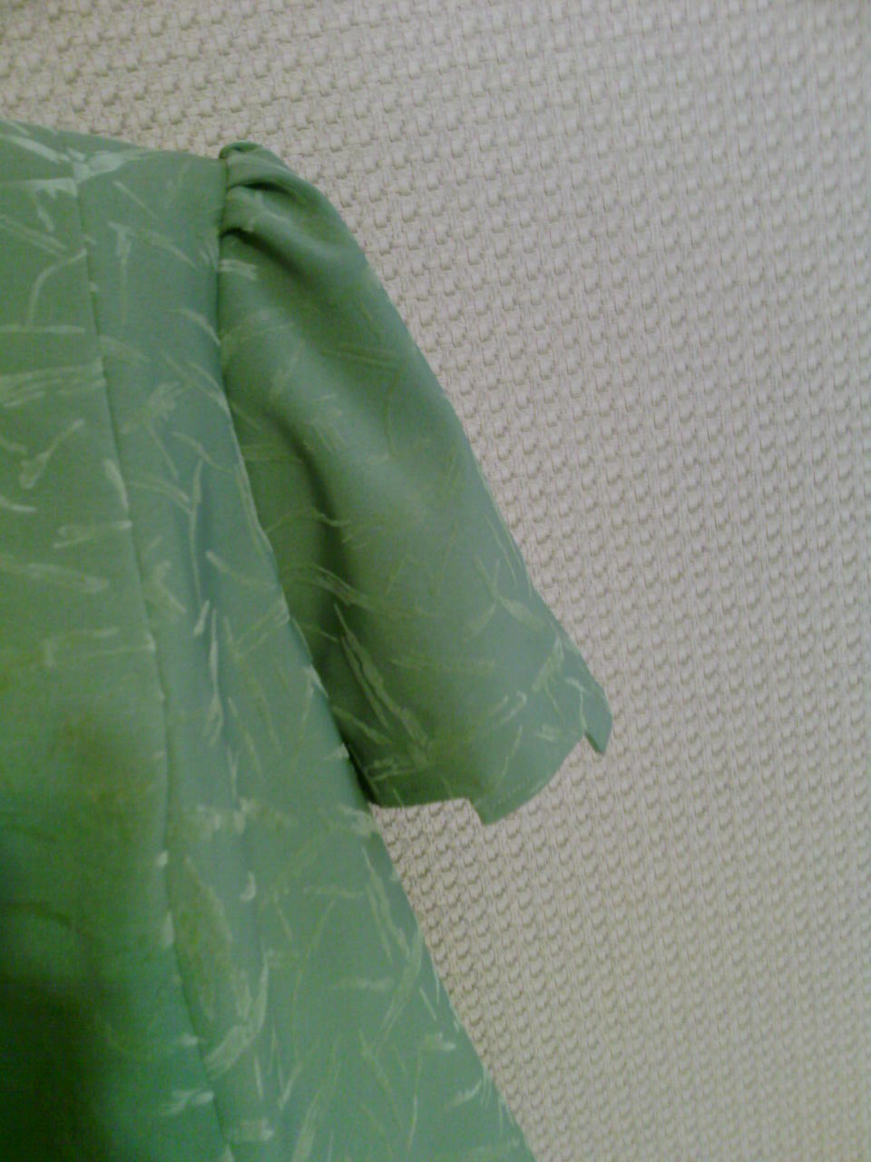 Костюм двойка. Вид вблизи. Фигурная горловина и низ рукава.
