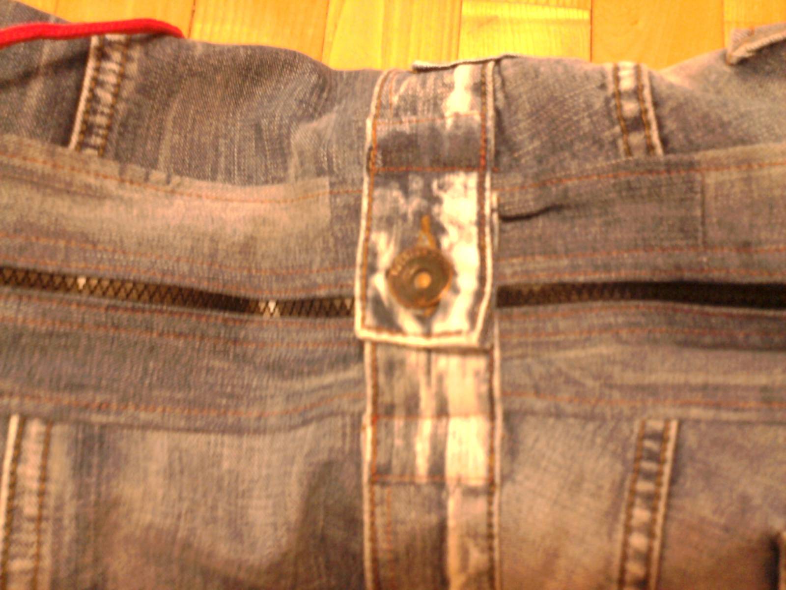 Комбинезон джинсовый. Вид сверху. Застежка молния и пуговица.