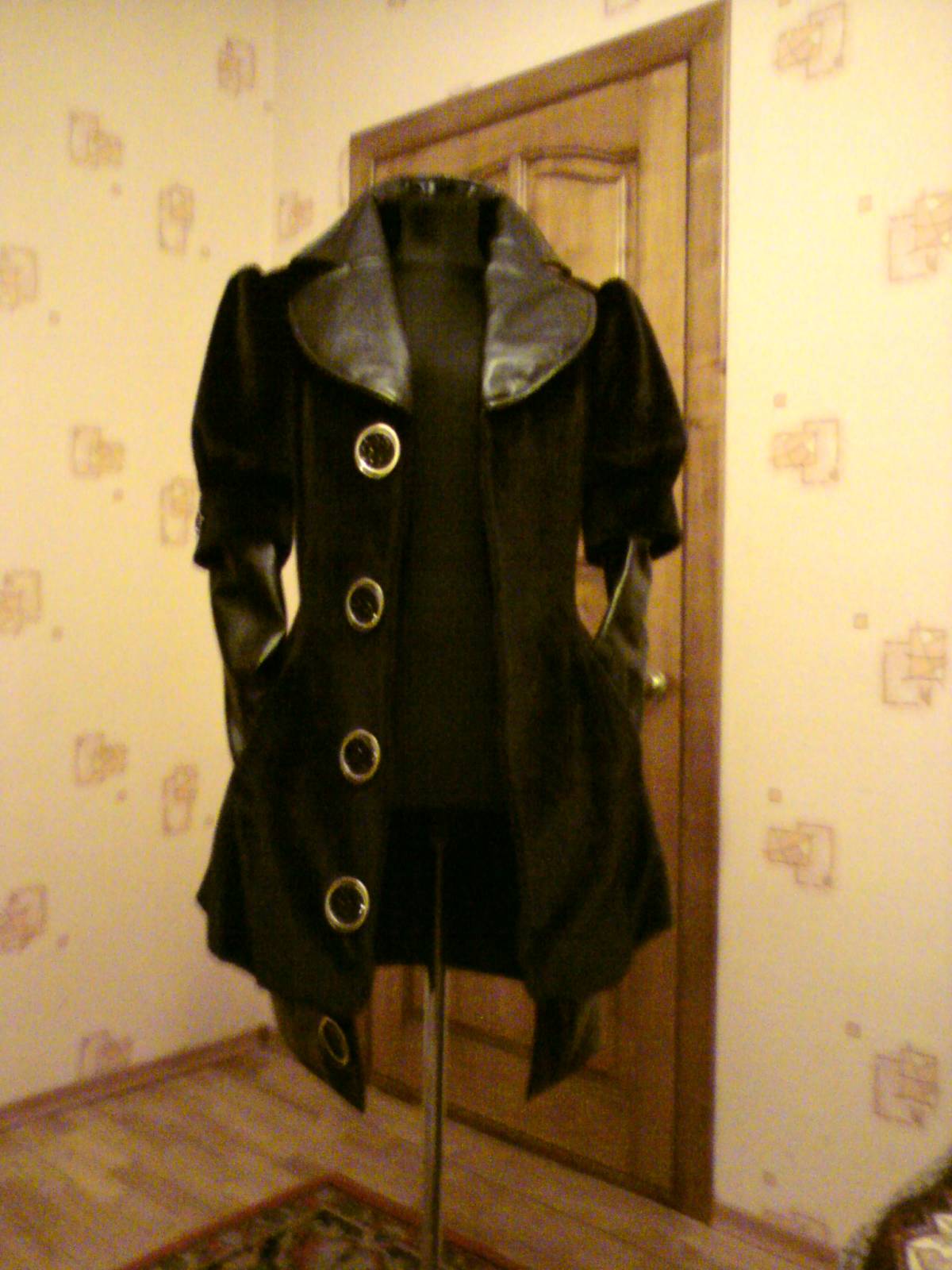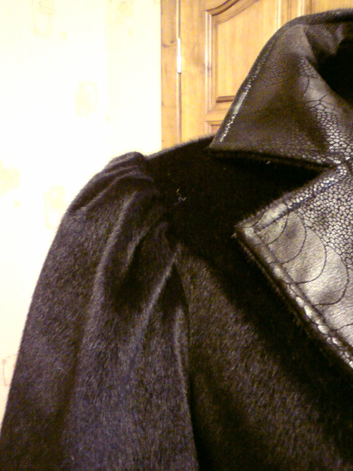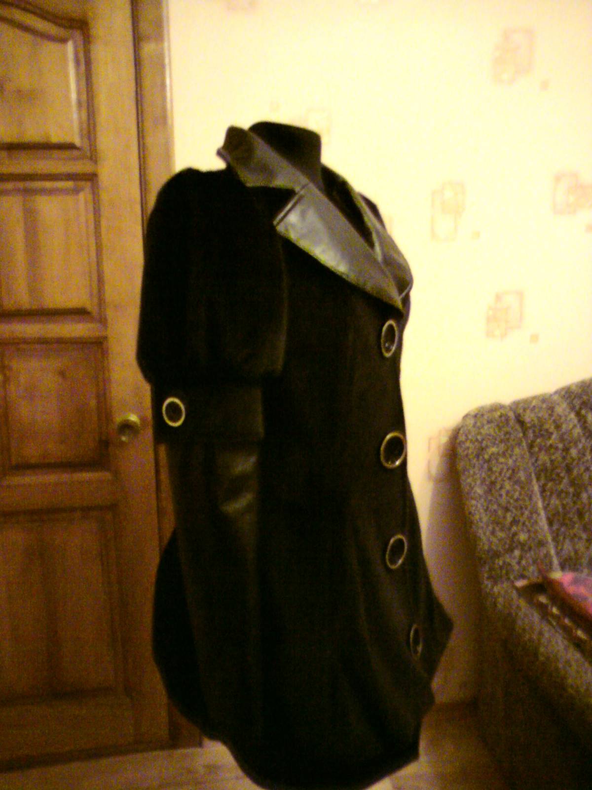 Пальто демисезонное. Ткань: искусственный короткий мех, кожзам, подкладка - вискоза. Застежка - крючки.