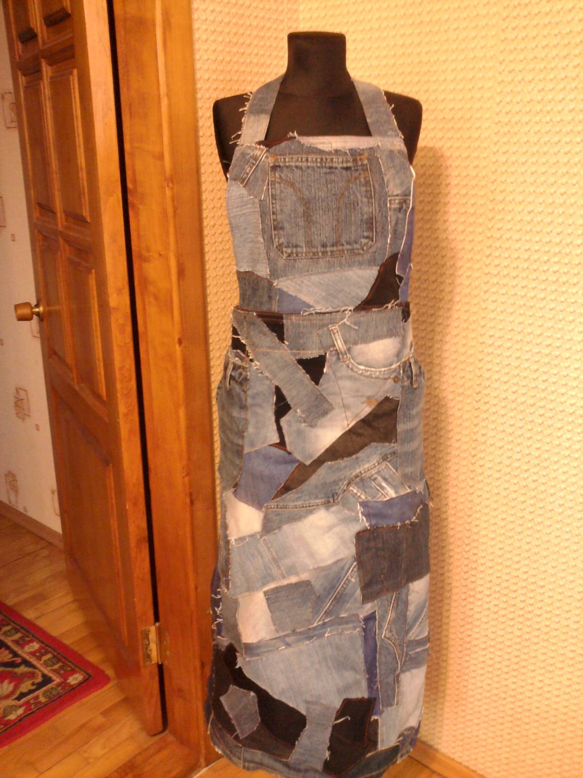 Фартук. Ткань: джинс разных цветов. Сделано в стиле печьворк.
