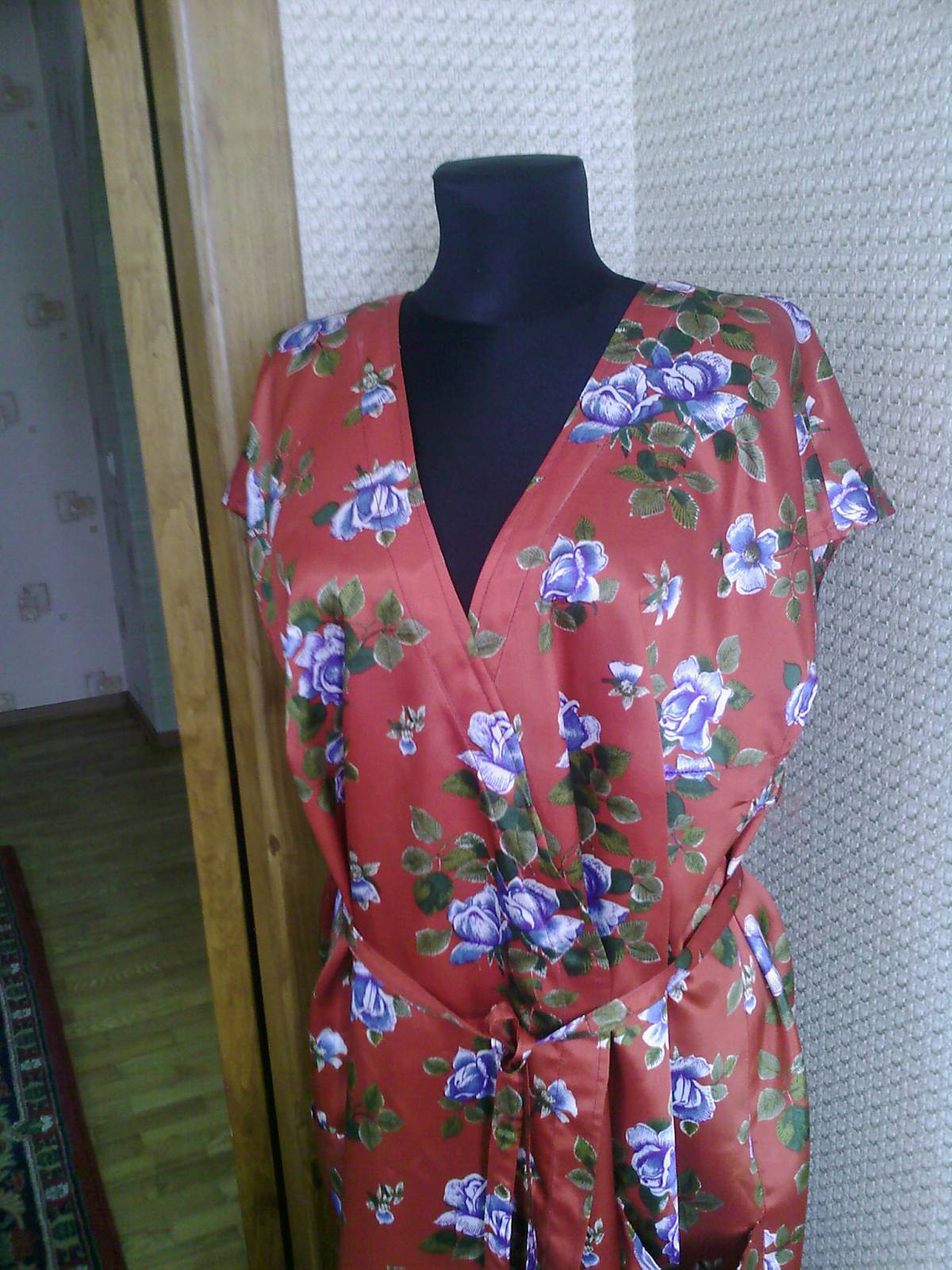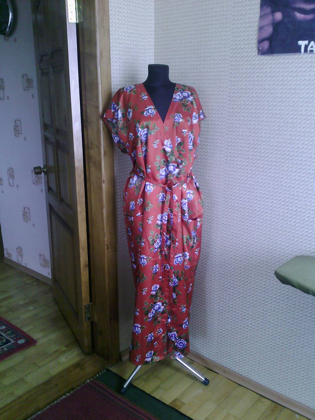 Халат домашний. Фиксируется на талии за счет пояса и внутренних тесемок.