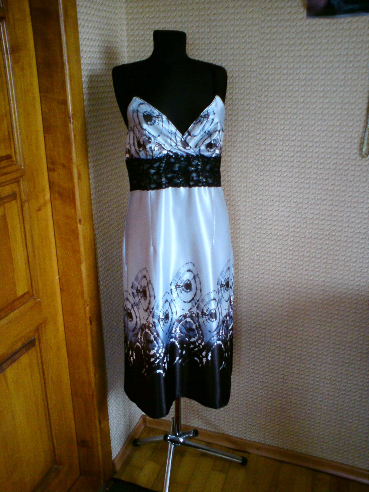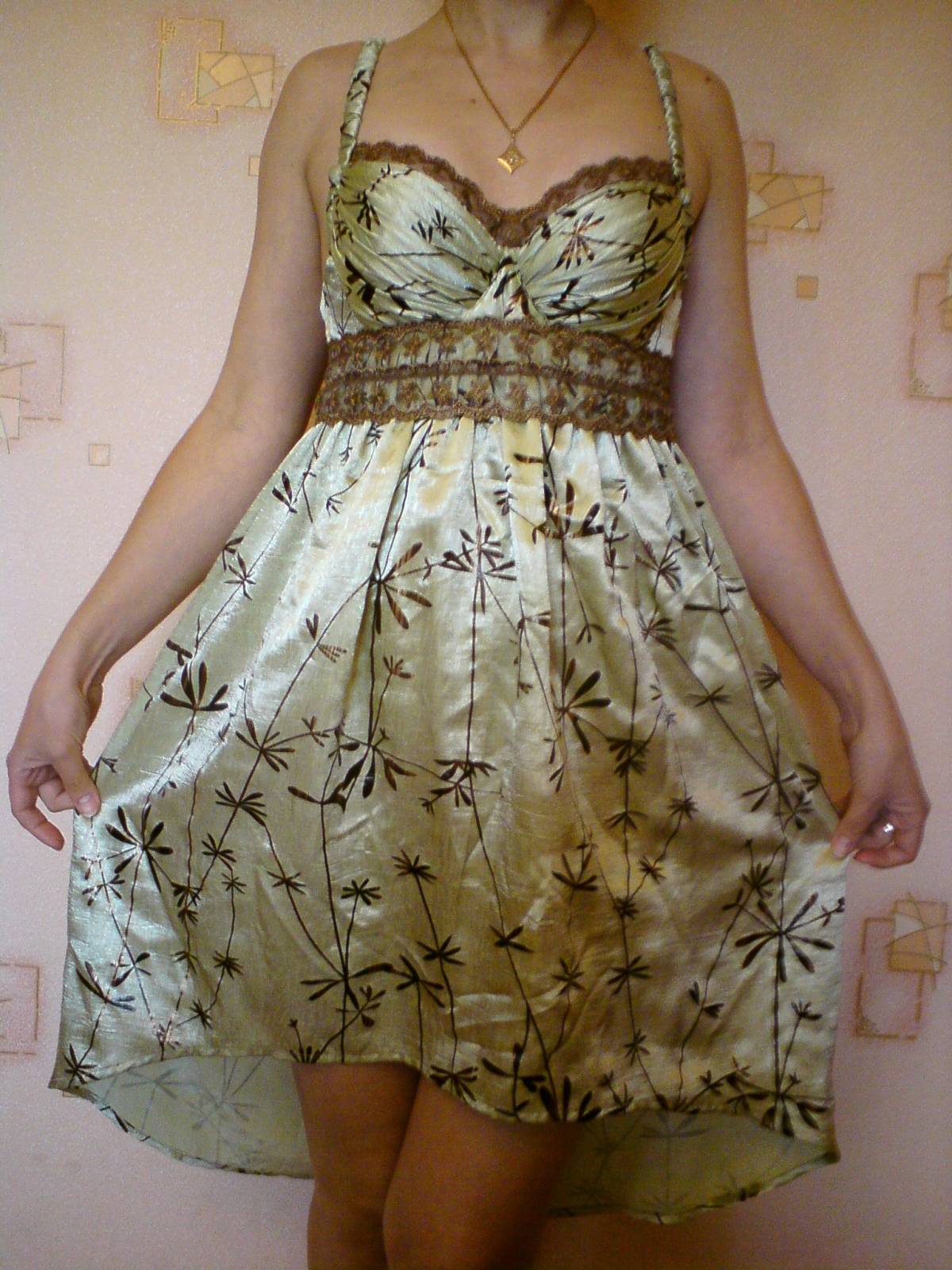 Платье коктейльное. Ткань: тонкий атлас с принтами, кружево.