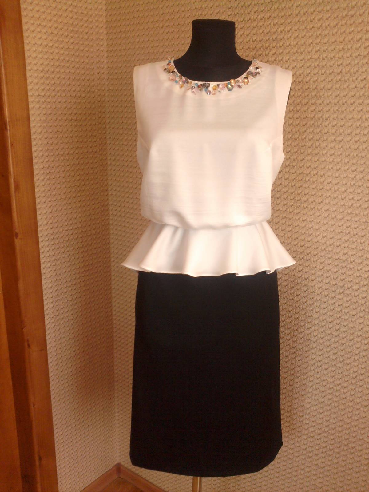 Платье черно-белое "Классика". По горловине отделка стразами.