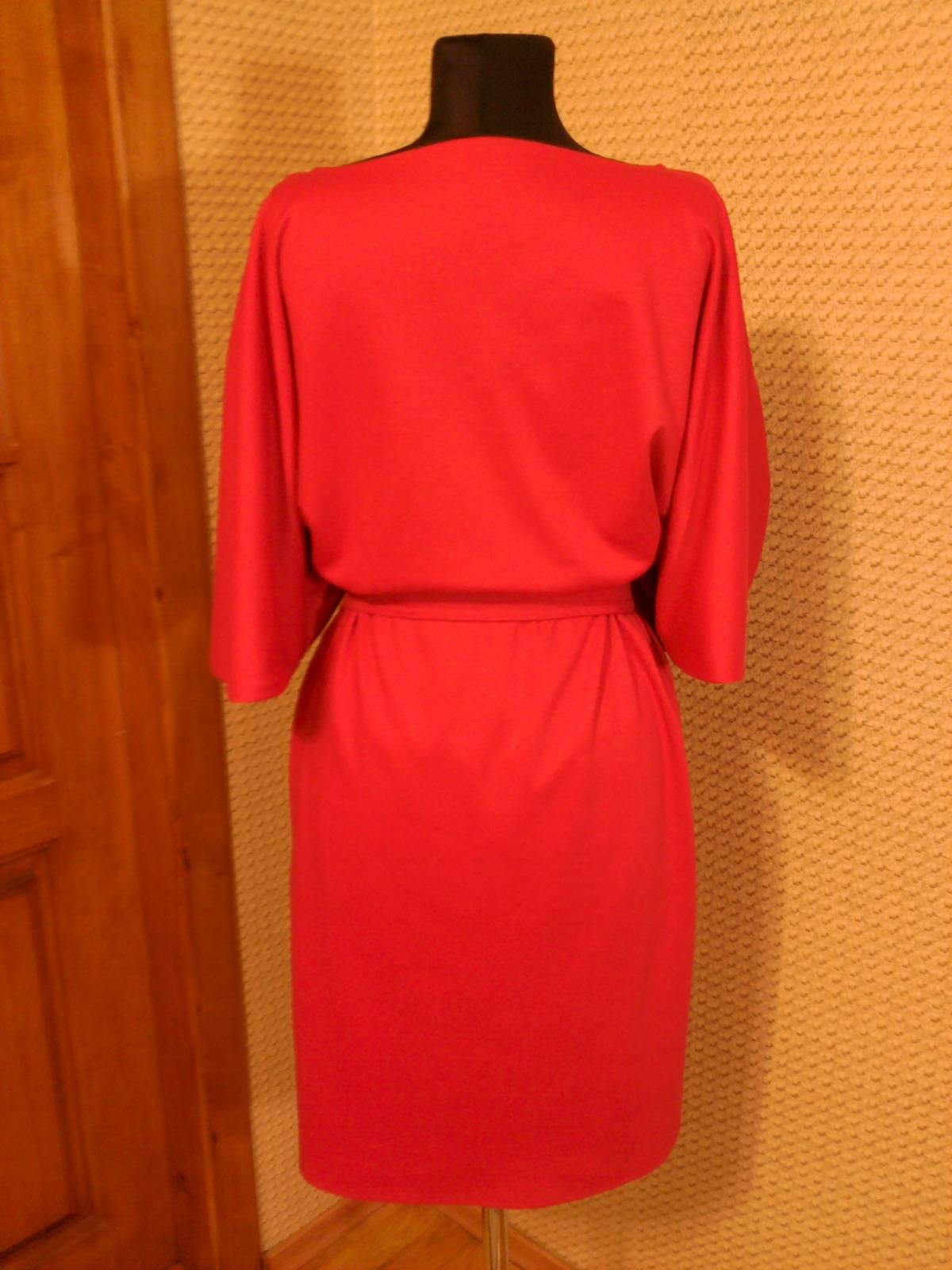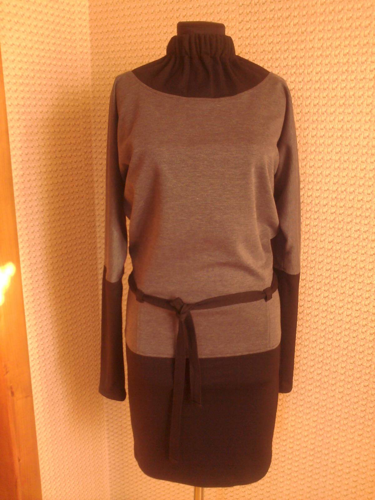 Платье комбинированное. Ткань: трикотаж двух видов. Рукав "летучая мышь".