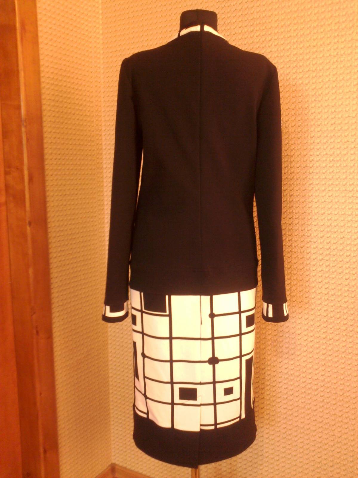 Платье " Классика". Ткань: трикотаж двух видов. Заниженная талия, узкий рукав, зауженное к низу и шлица по спинке, за...