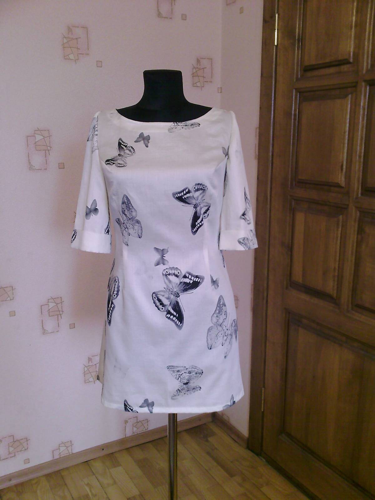 Платье с бабочками. Ткань: тонкий котон-стрейч с принтами.